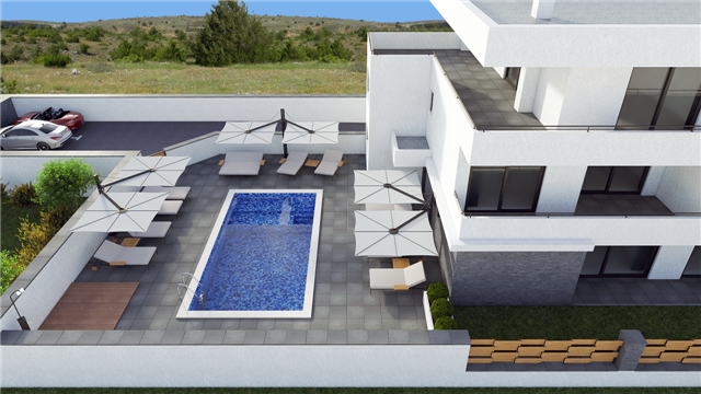 Dragi gosti, za sezonu 2019. spremamo za Vas 5 novoizgrađenih apartmana kategorije 4*. Svi apartmani će biti klimatizirani i opremljeni modernim namještajem. Objekt sadržava bazen, saunu i fitnes dvoranu. Apartmani su locirani blizu poznate Rajske plaže, pekarnice, dućana i restorana (200 m). Veselimo se Vašem dolasku.